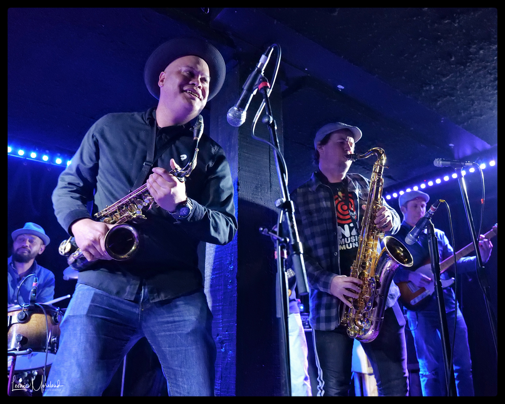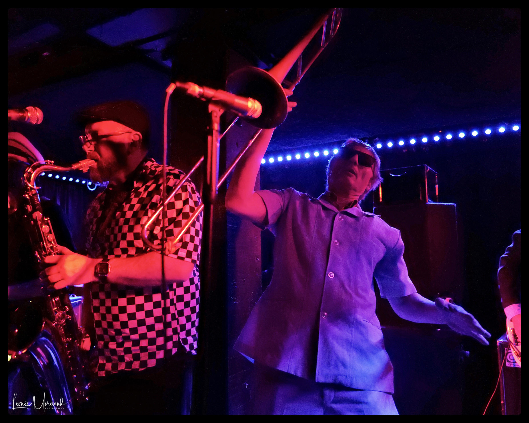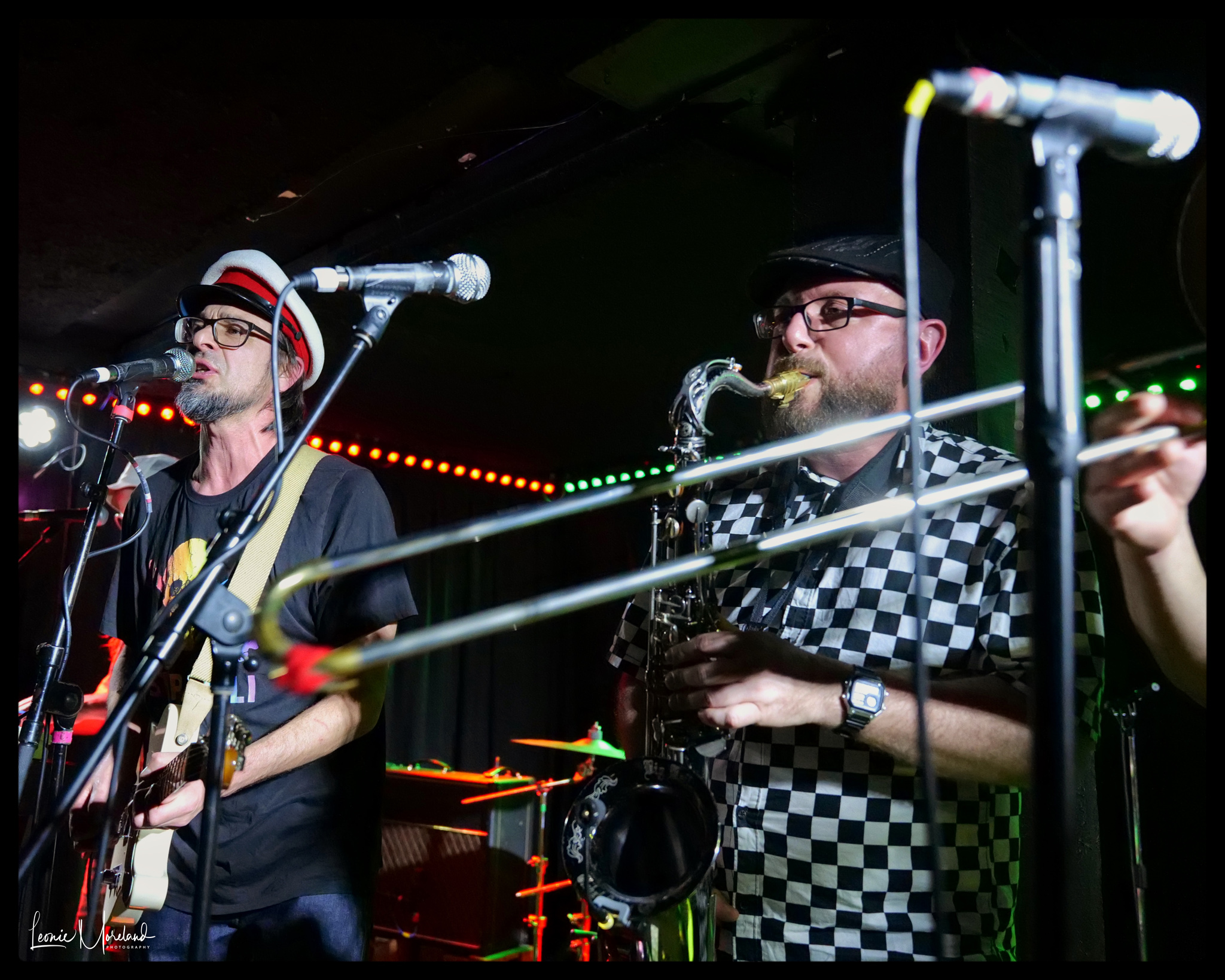 They start with Battleska Skank. We like to dance/ We like to party. Immediately they establish that classic accent on the off-beat sound. Up front are the horns. Trumpet, trombone and saxophone. They sound superb, and again the sound man at Whammy gets it spot on.
