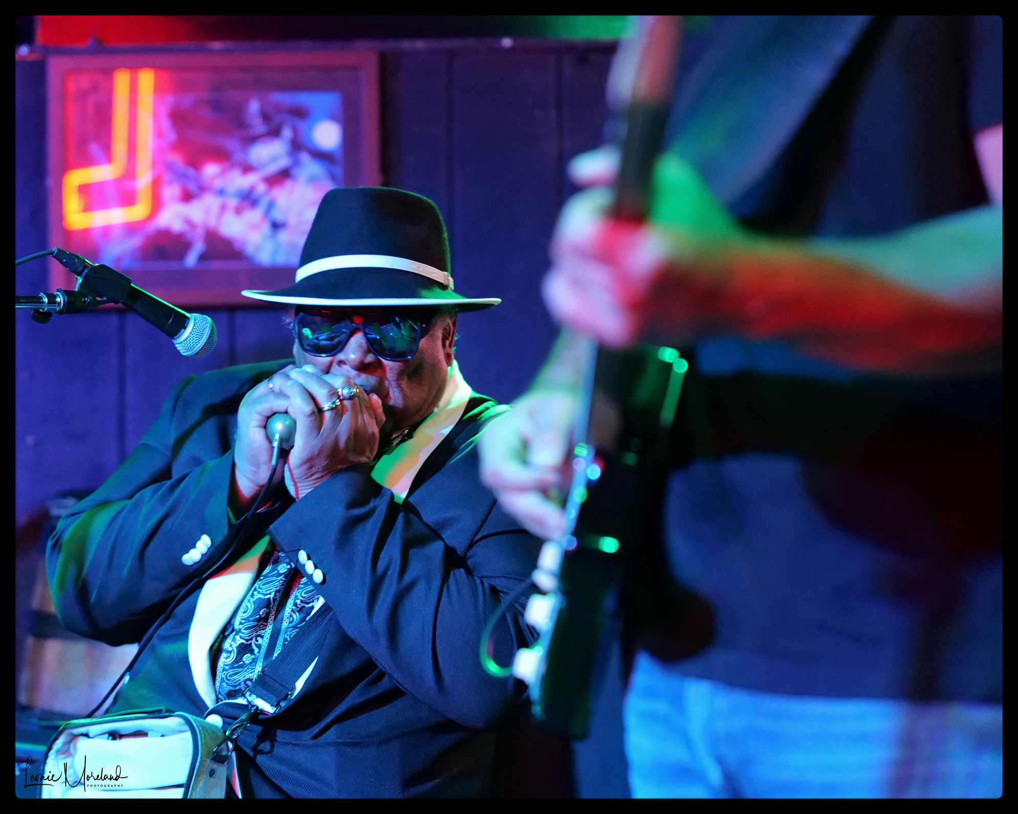 Later we went to Blues City Cafe and caught a set of Blind Mississippi Morris. Morris sat in his chair with his selection of mouth harps hanging from his belt, ready to play at a moment. Morris was supported by a highly skilled guitarist, bassist and drummer.