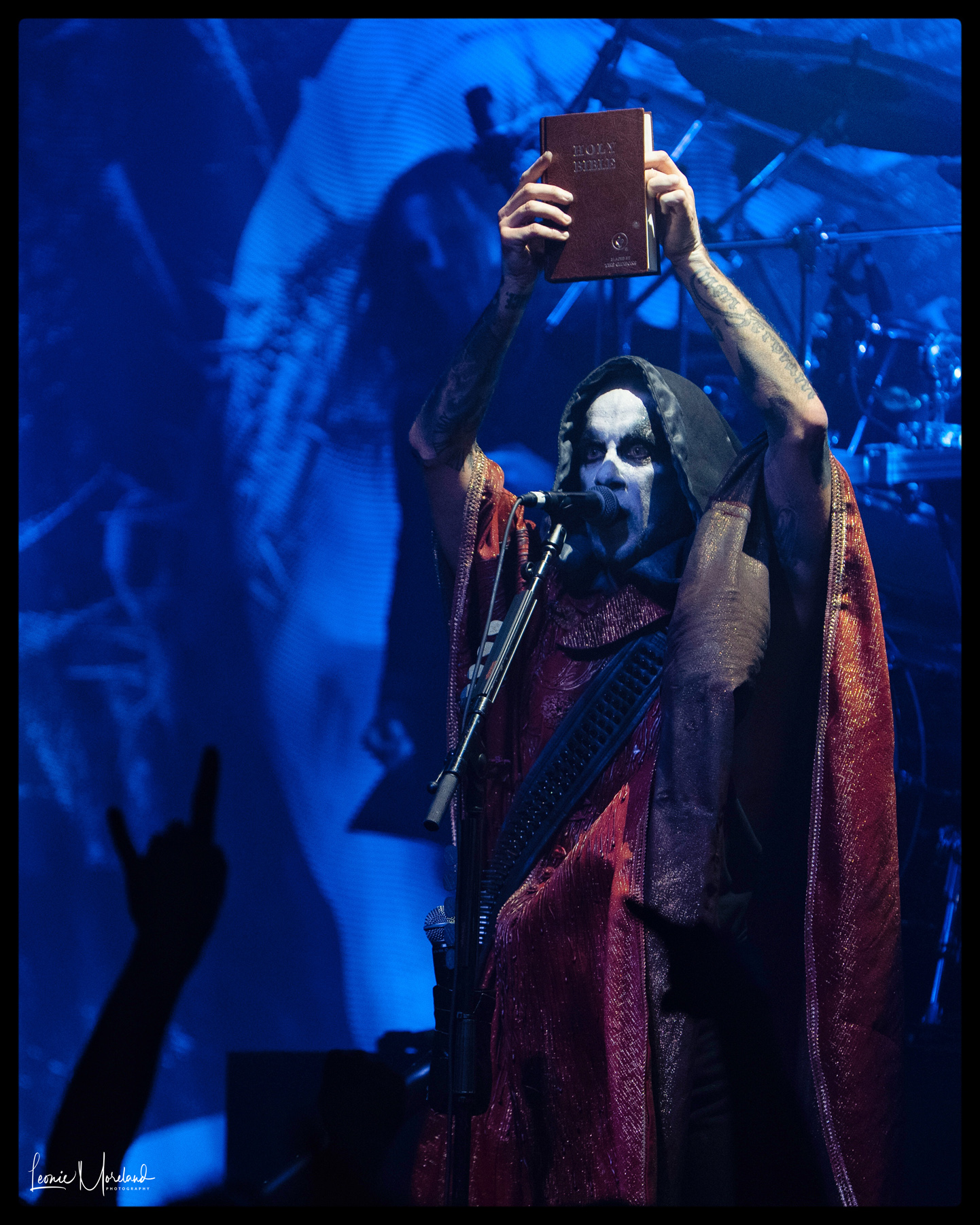 Behemoth finish the show with Ojcze Nasz. Blood red light beams bathe the stage and Satan is mentioned.