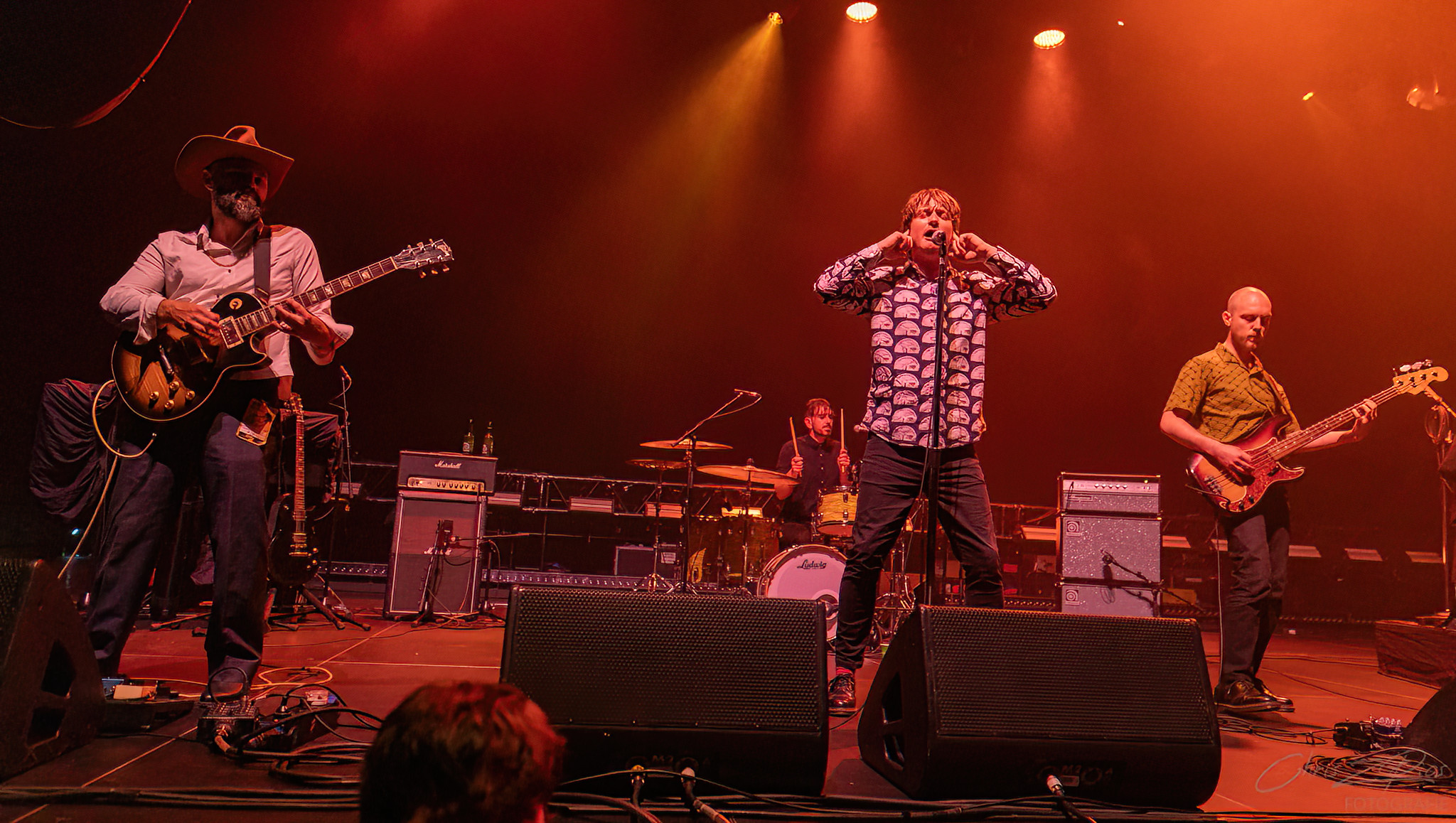 The driven and familiar p-bass and humbucker tones from Daniel Barrett and Sven Pettersen over the ever-steady beat from drummer Izaak Houston slowly warm up the crowd of punters.