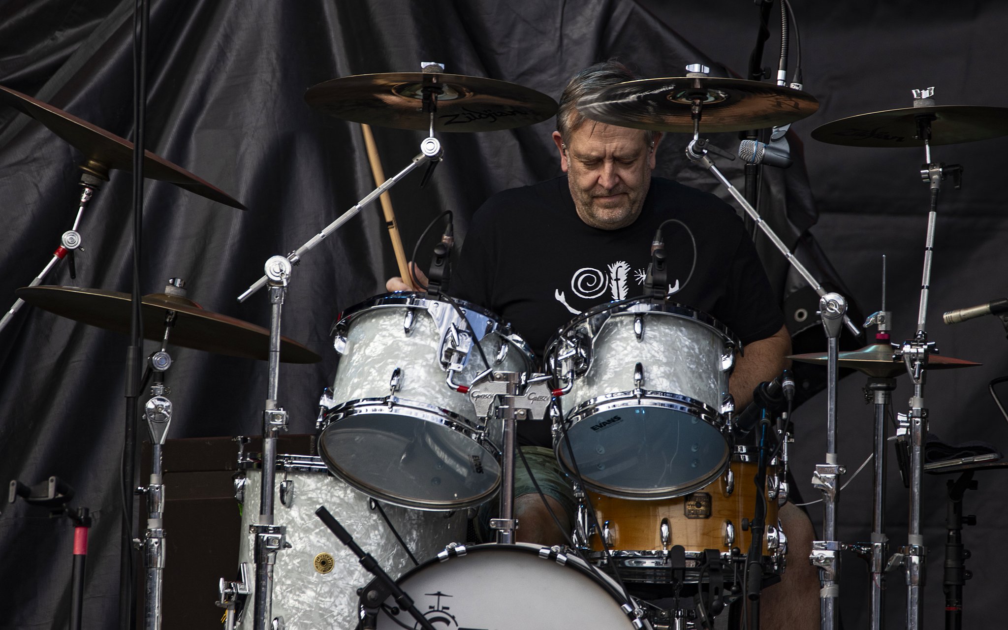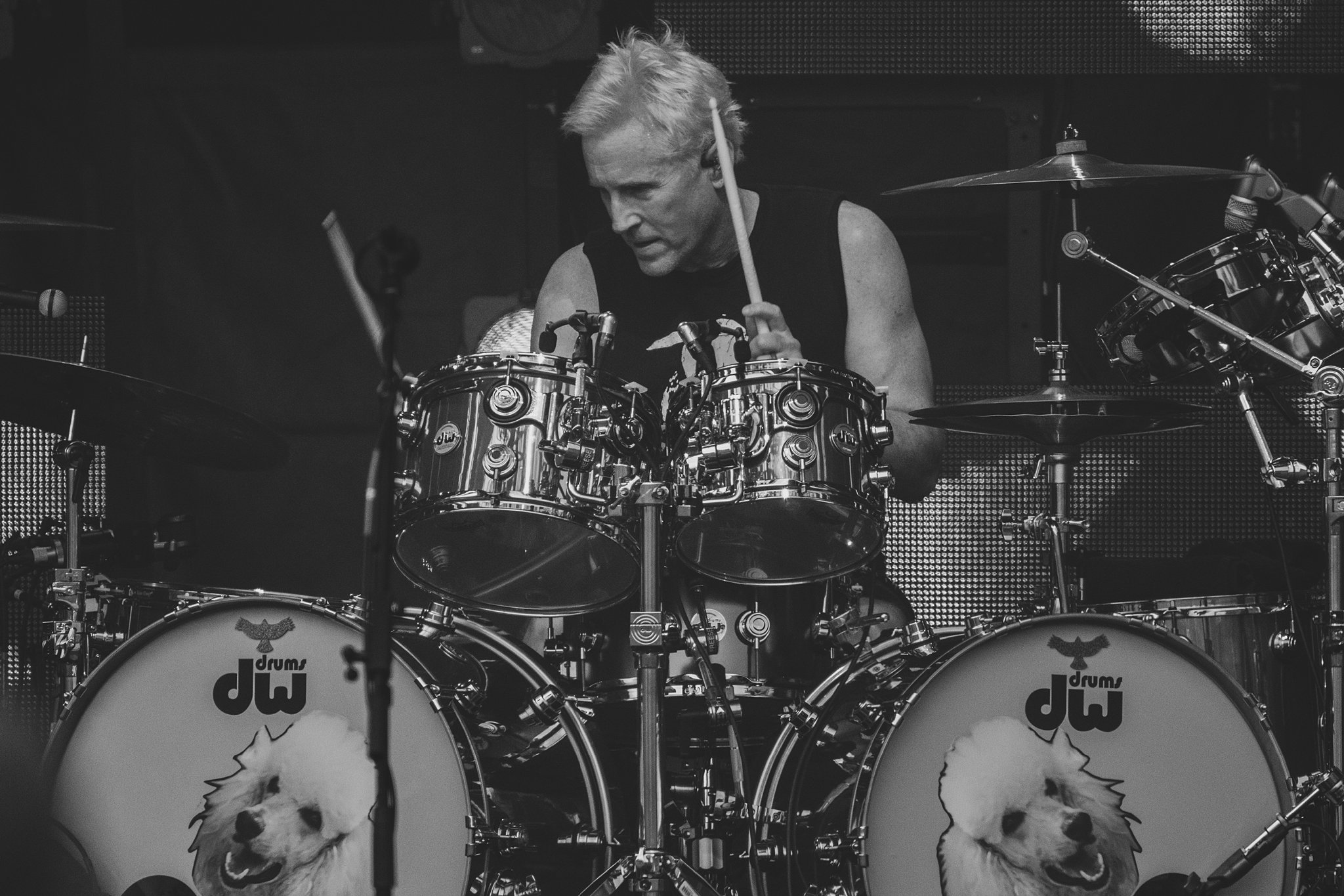 Freese has played with everybody and been a session musician on over 400 released albums. Just the fact that he played on crucial Devo songs is enough to earn respect. The big screens give him some prominence when he goes off on rapid-fire fills which are the equal of the legendary Moonie of the Who.