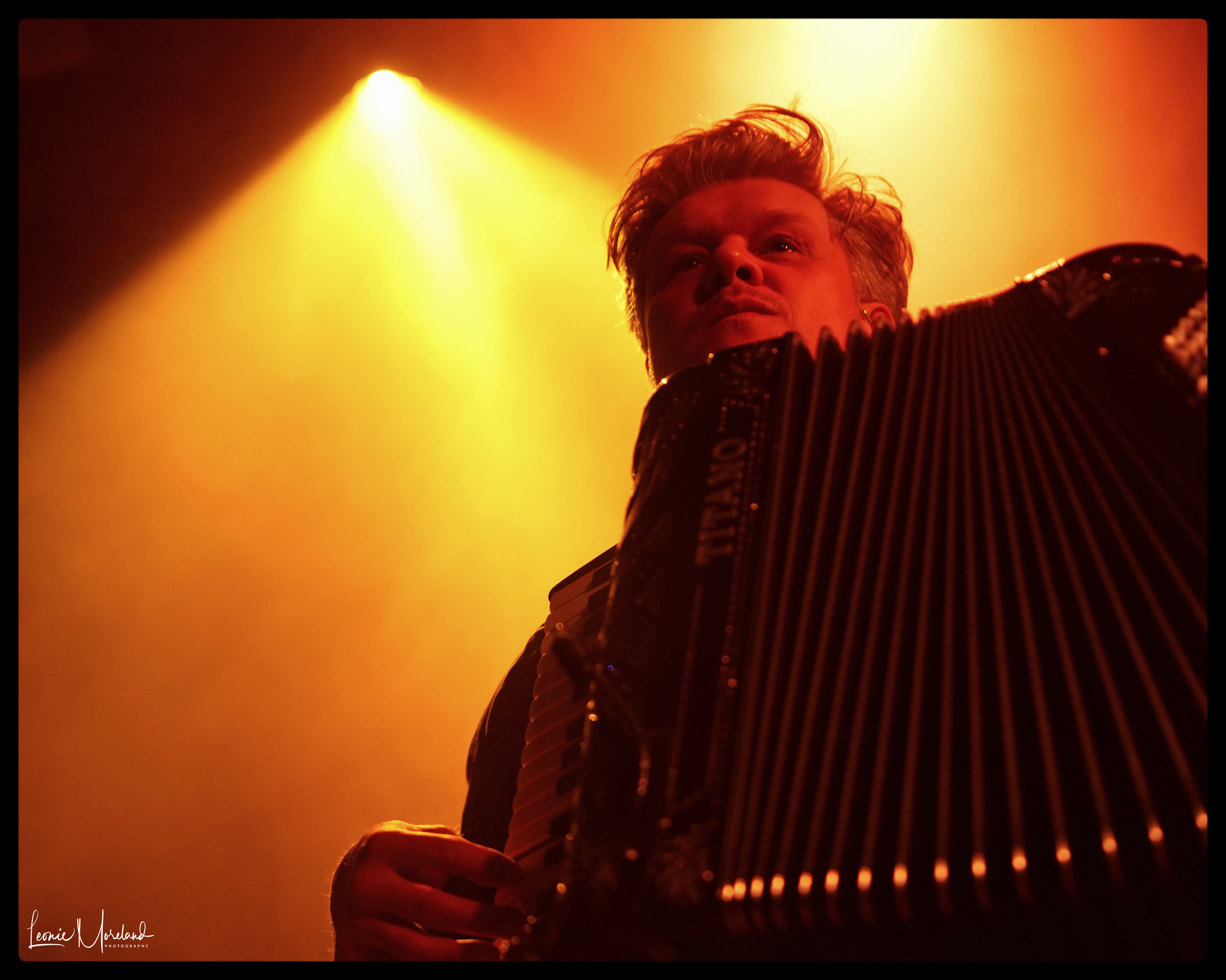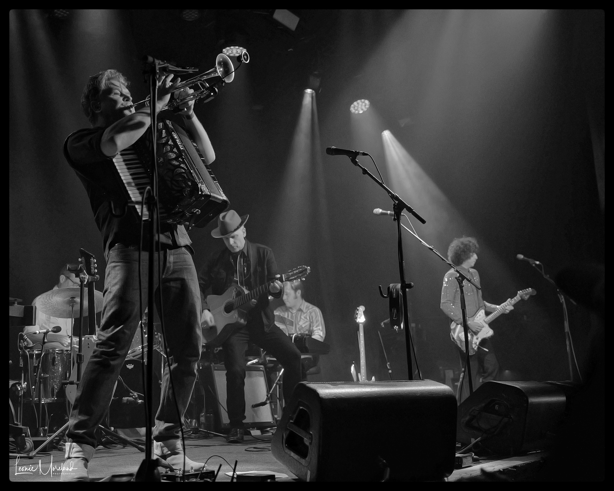 The rest on stage with reasonable certainty. Brian Lopez guitars and bass. Jacob Valenzuela, Martin Wenk, Sergio Mendoza cover accordion, trumpets, xylophones or marimbas, keyboards, percussion, guitars, and lap steel amongst themselves.