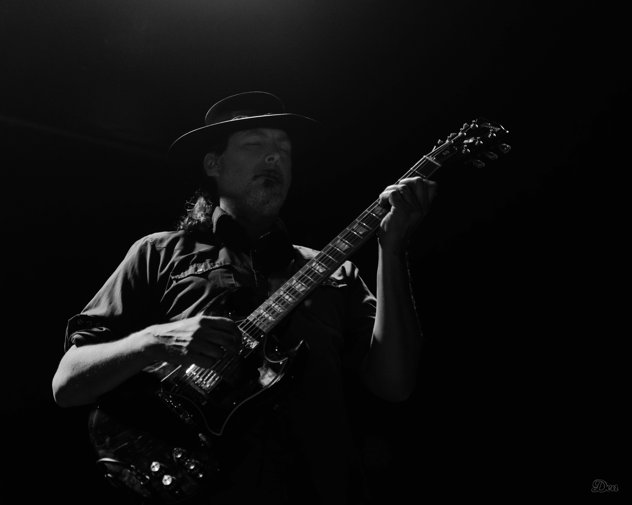 Meyer wears a Stevie Ray Vaughn hat. They all play vintage instruments of the period. The bass sound must come from the keyboard. On recordings, Krieger used to play the bass parts. They also used Larry Knechtel (from the Wrecking Crew) and even Lonnie Mack at times.