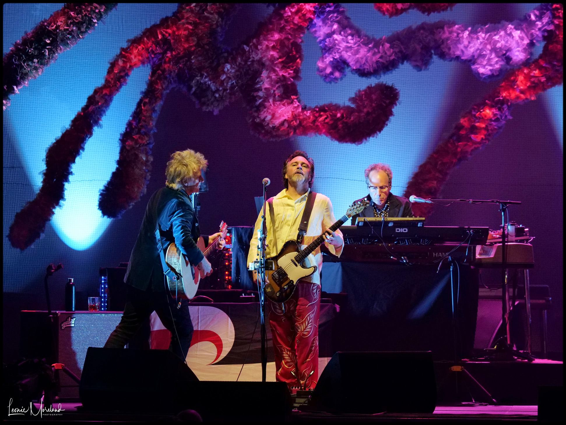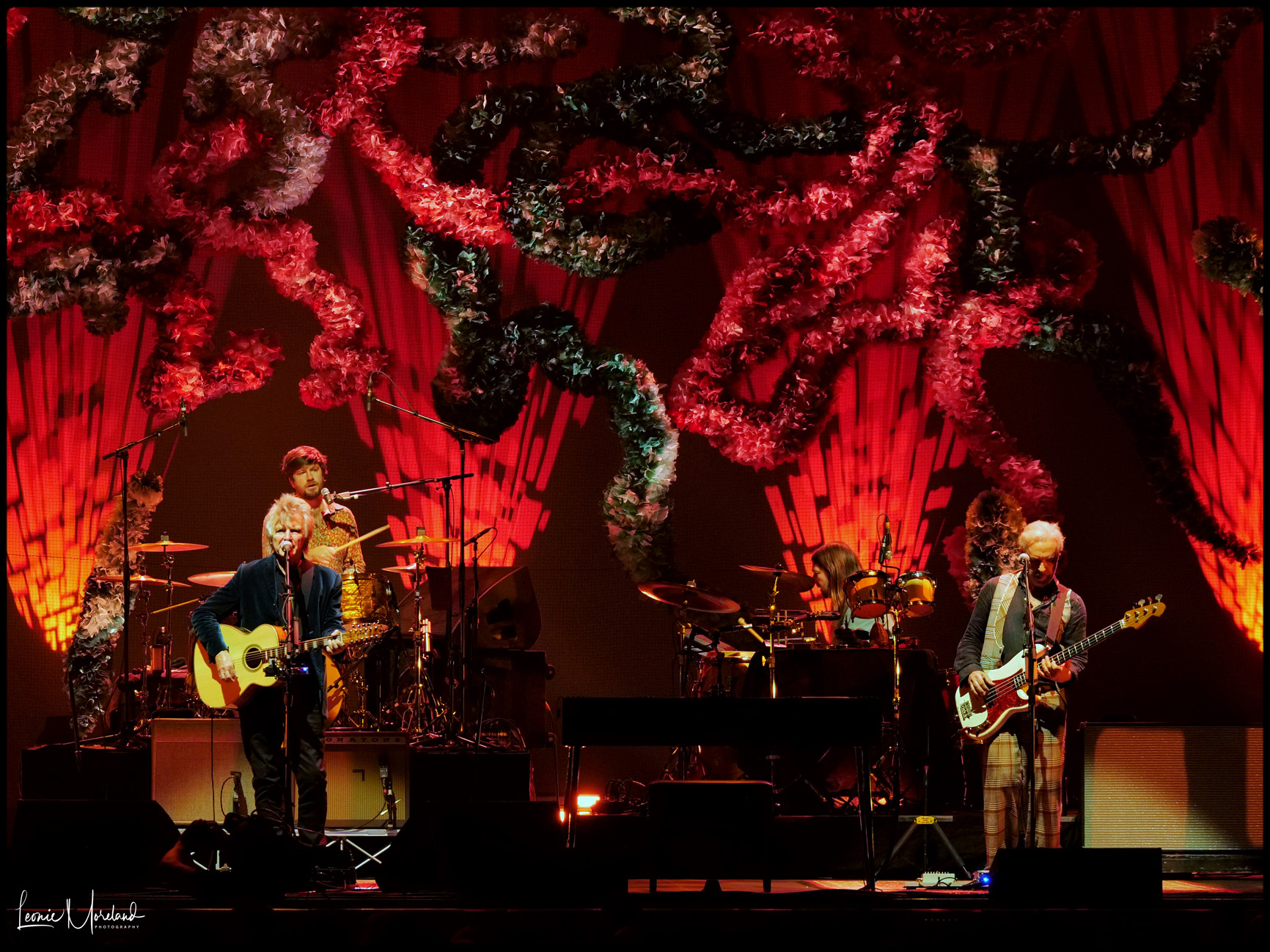 With him Liam Finn lead guitar (fresh off supporting Peal Jam a week ago), Elroy Finn drums, Mitchell Froom the producer on keyboards, original band member Nick Seymour bass, Paul Taylor percussion.