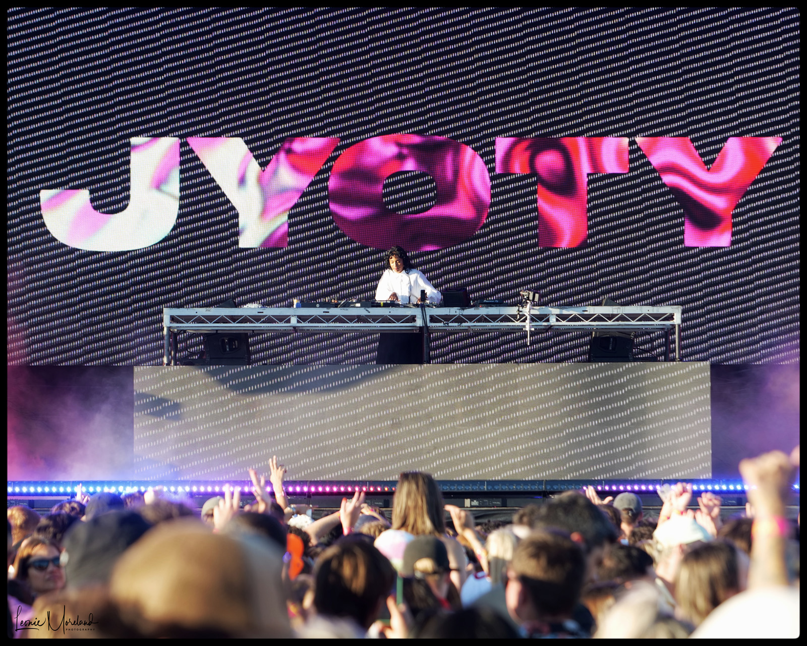 Luude comes on immediately after Becky Hill, and he’s all fast electronic percussion beats. Old school Techno like Planet Patrol is part of it.