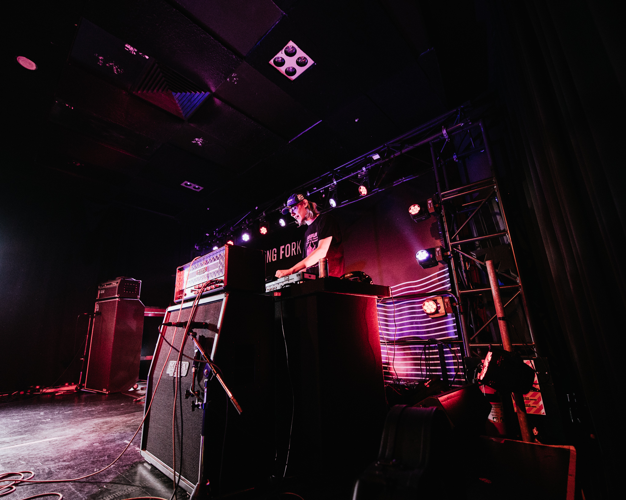 And turn it up he did. The crowd lost themselves in the overwhelming bass, with Darkie screaming into his mic alongside MK Ultra’s vocalist. At one point, his relentless jumping and moshing led to an injury, forcing him to ask the audience to carry the energy while he took a step back. And they delivered.