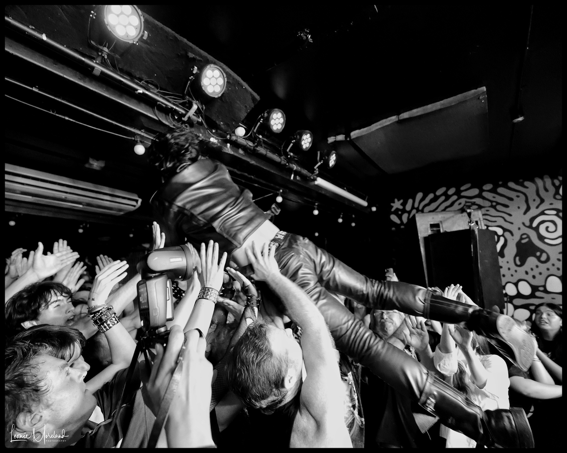 Madness ensues. Seiji dives into the crowd, surfing across the hands of the audience before flipping upside down, attempting to walk on the ceiling. A female fan soon joins him, hoisted up by the crowd in a bid to replicate the feat.