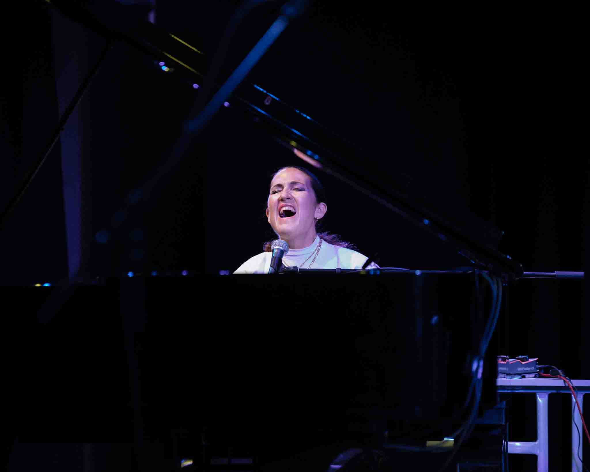 The second set opened with three tracks from her latest release, Lemons, Limes and Orchids. The title track stood out, underpinned by a droning violin backing track. Pre-recorded of course, since she was busy singing and playing piano.