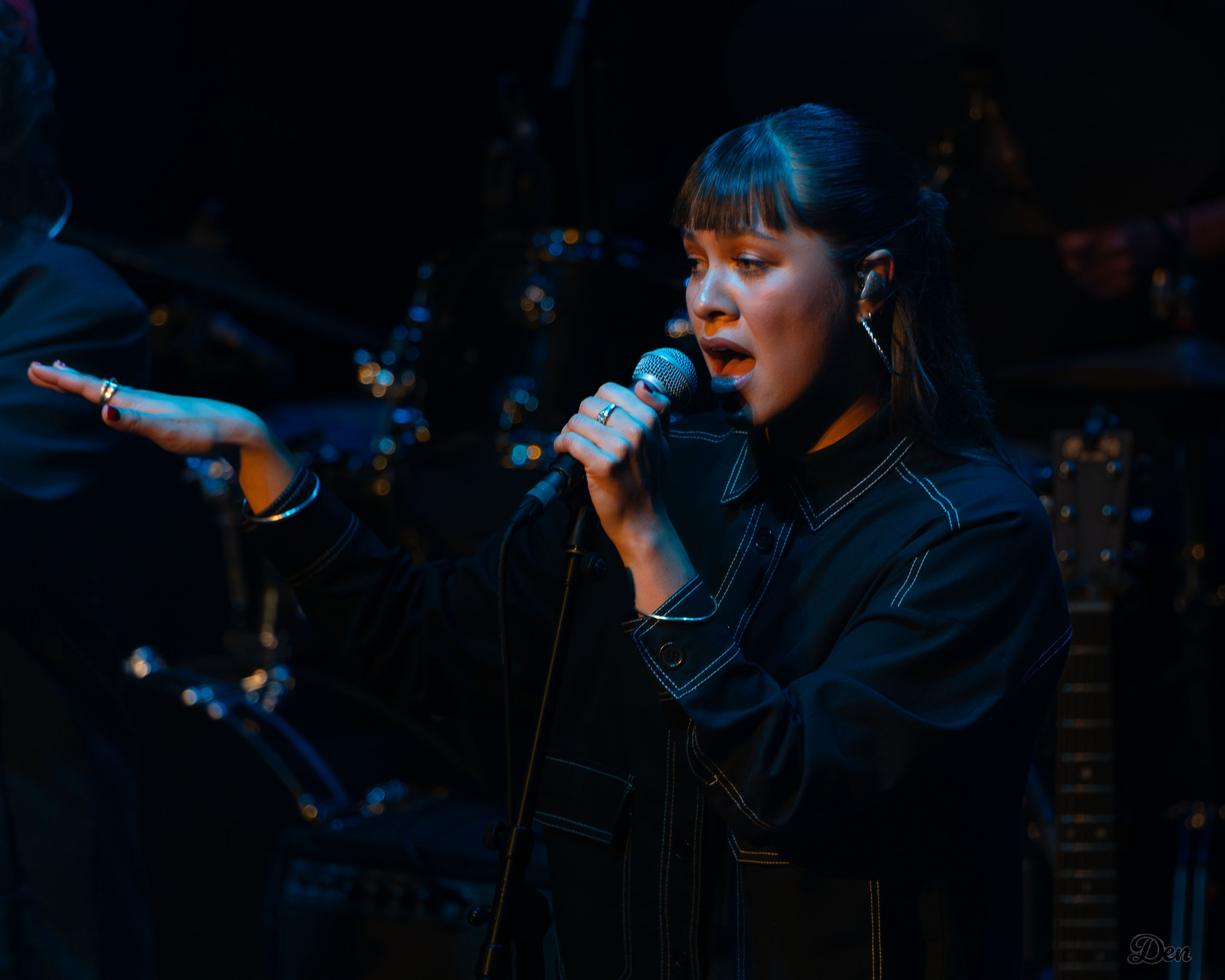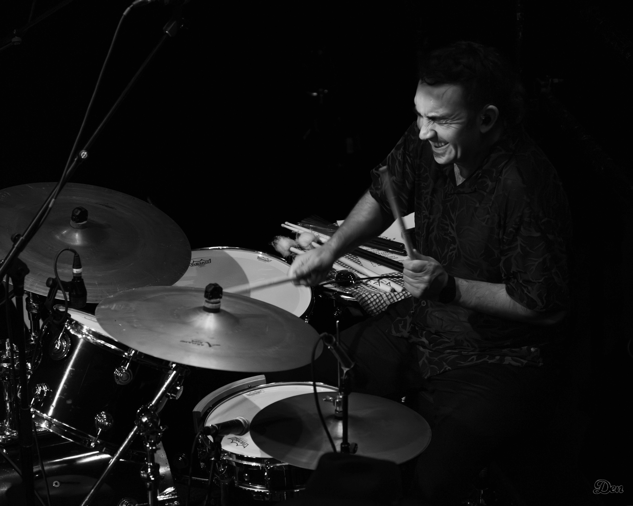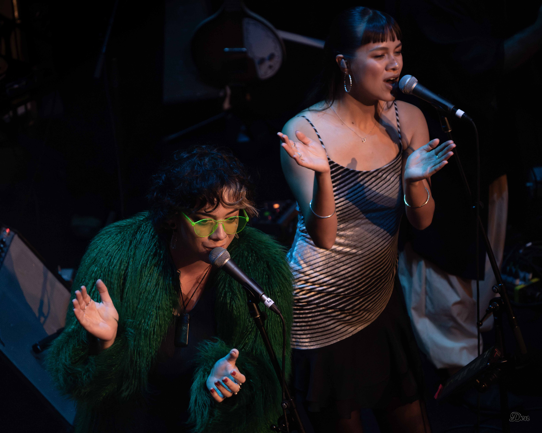 Iraia Whakamoe drums and Aaron Stewart bass. The powerful engine room which is dominant all evening.