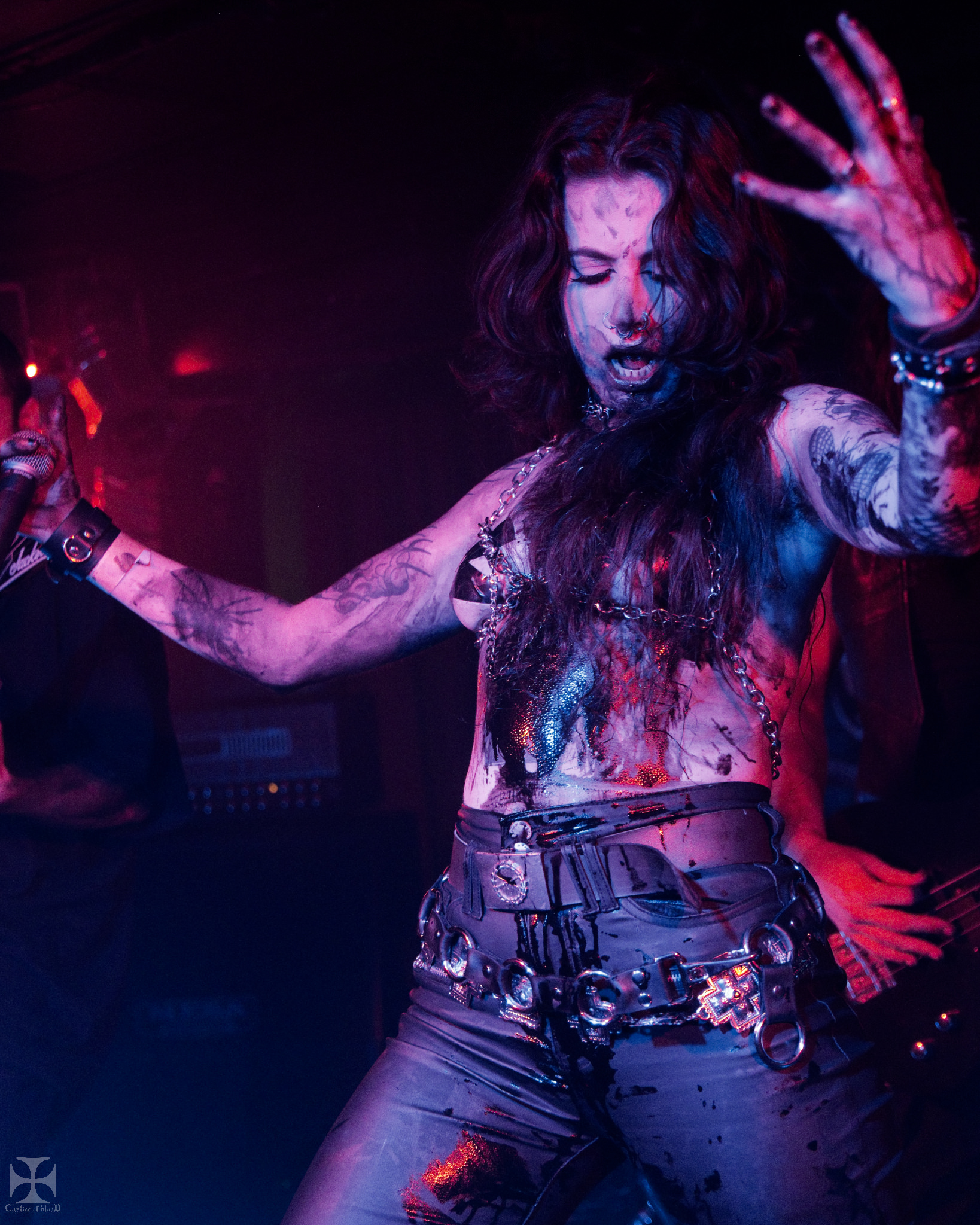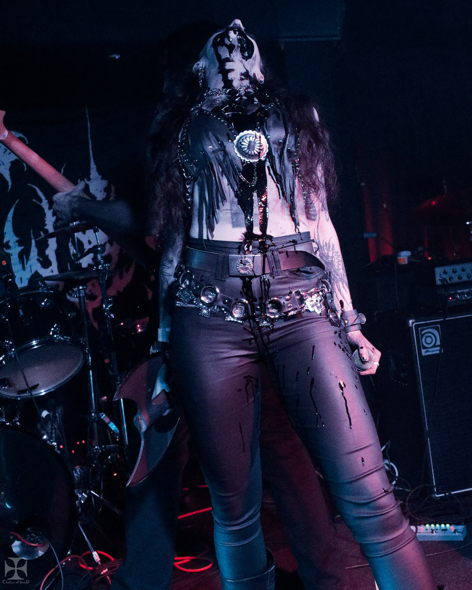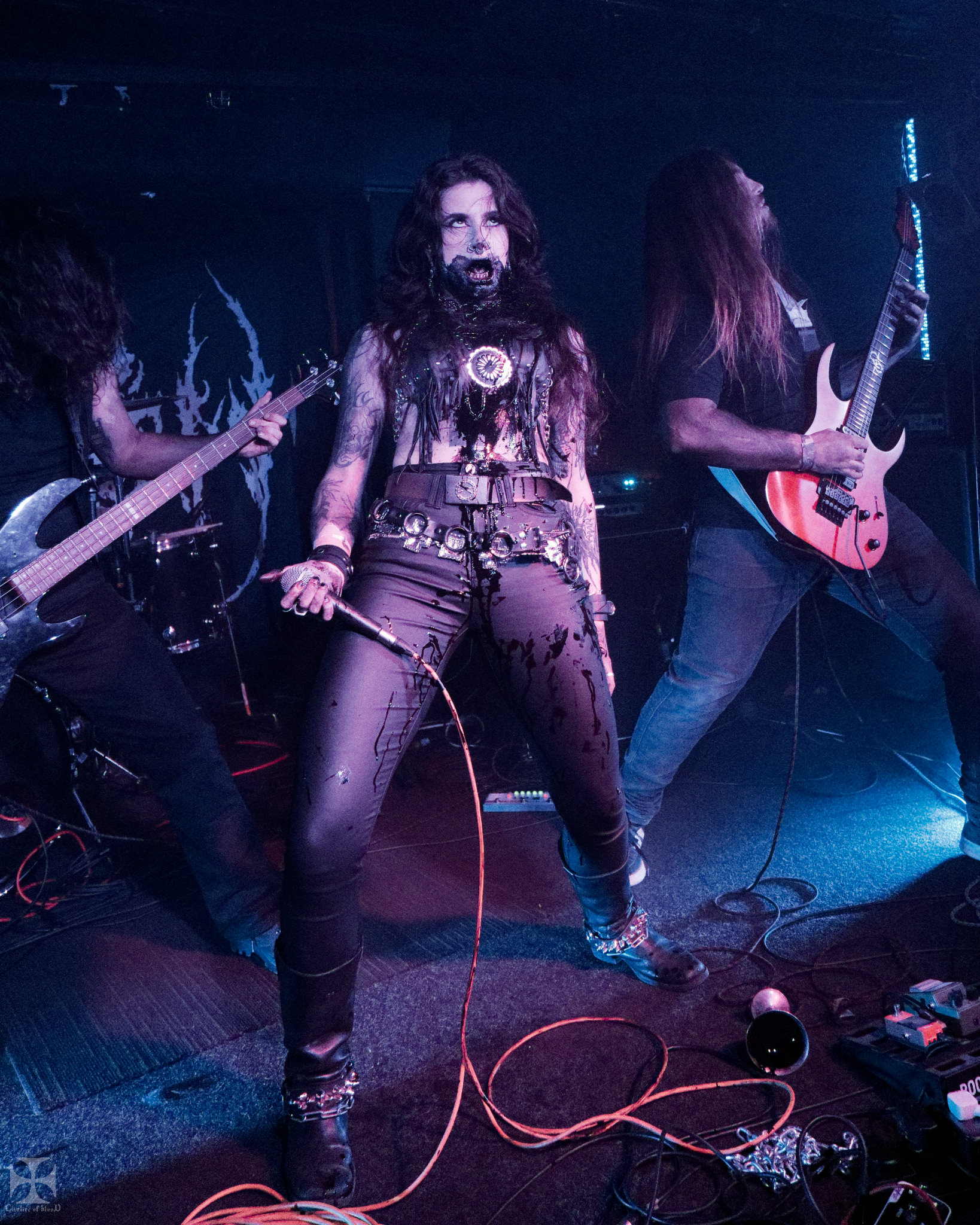 Rachel Collins makes a strong appearance as vocalist/front woman. A confident, demonic, yet somehow demure entrance, carrying a goblet and battle axe.