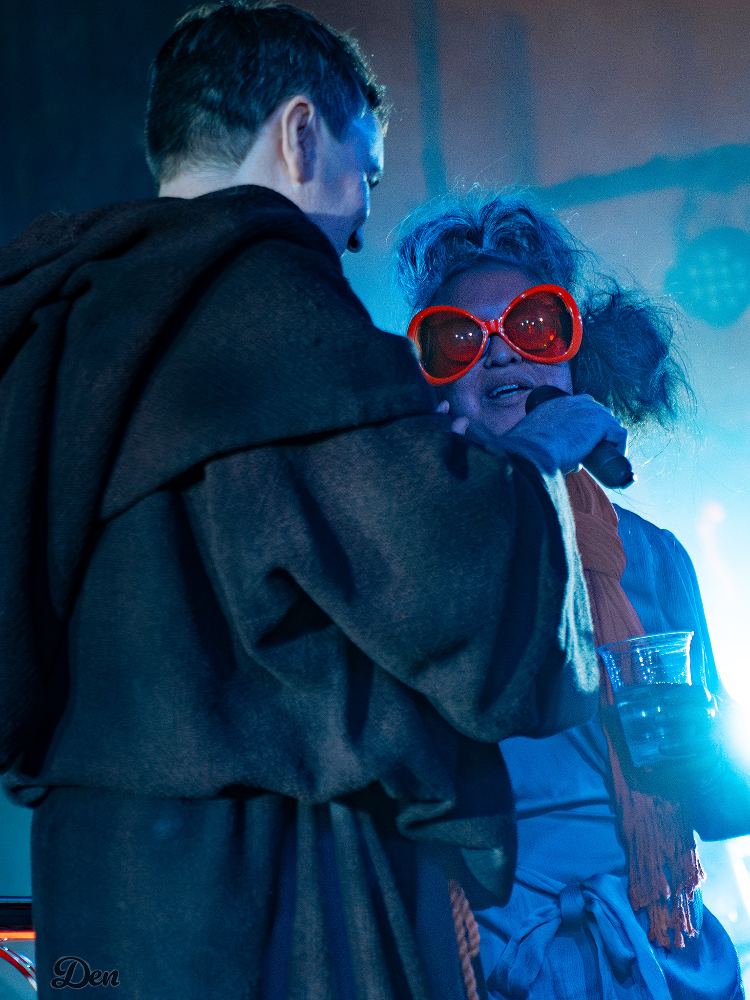 When they add churchy cathedral tones and bellows, they remind us of the great producer Lee Scratch Perry. It all becomes dream-like as the crowd around the pair look like Goths and Cure folk.