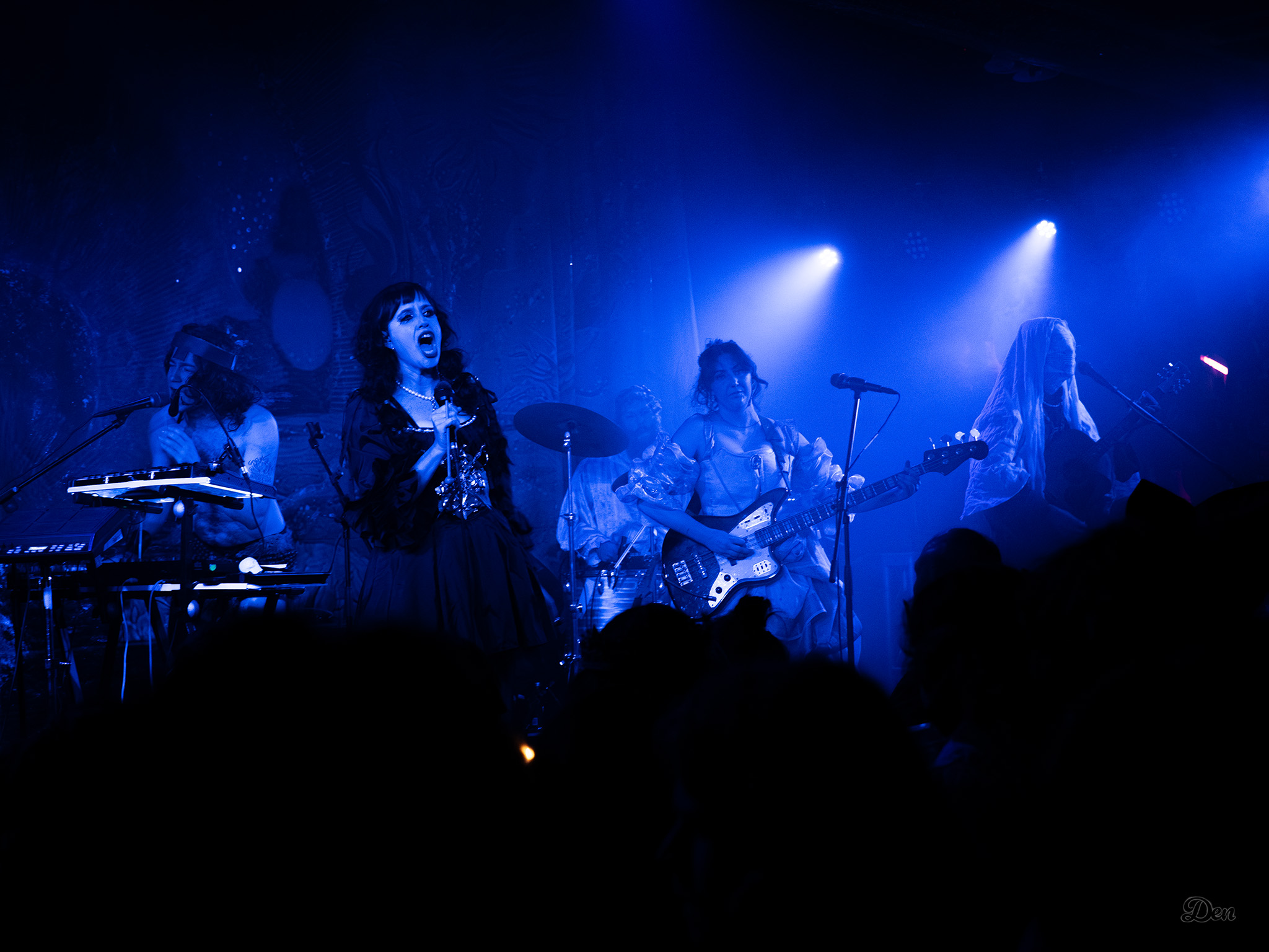 Tonight, she has crossed Betty with Alice in Wonderland and channels a witchy Grace Slick. All feral feminine anima energy.