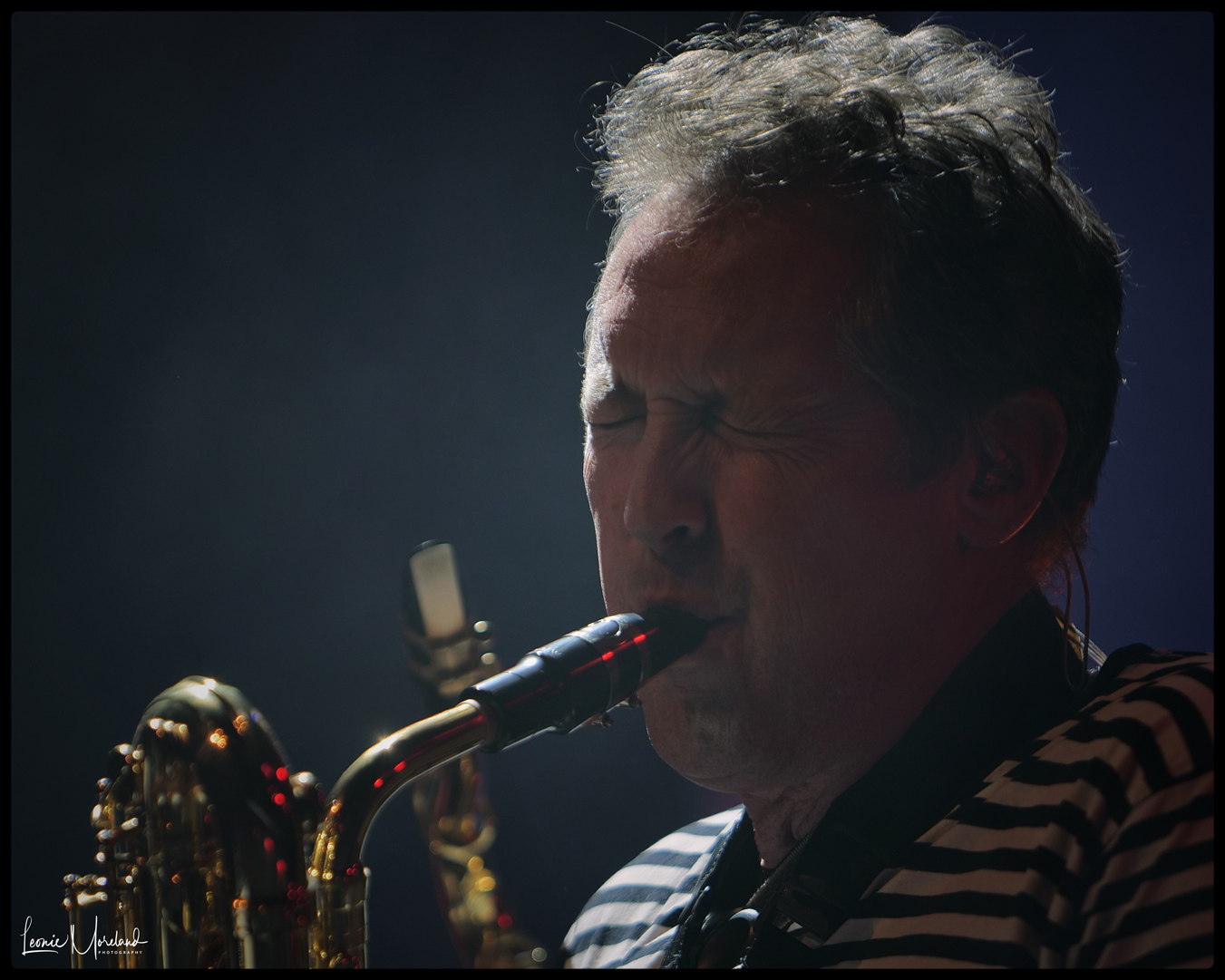 And what about Nick Atkinson, sax perfect in introducing Us and Them, which in turn segues into Any Colour You Like, as long as it’s dark.