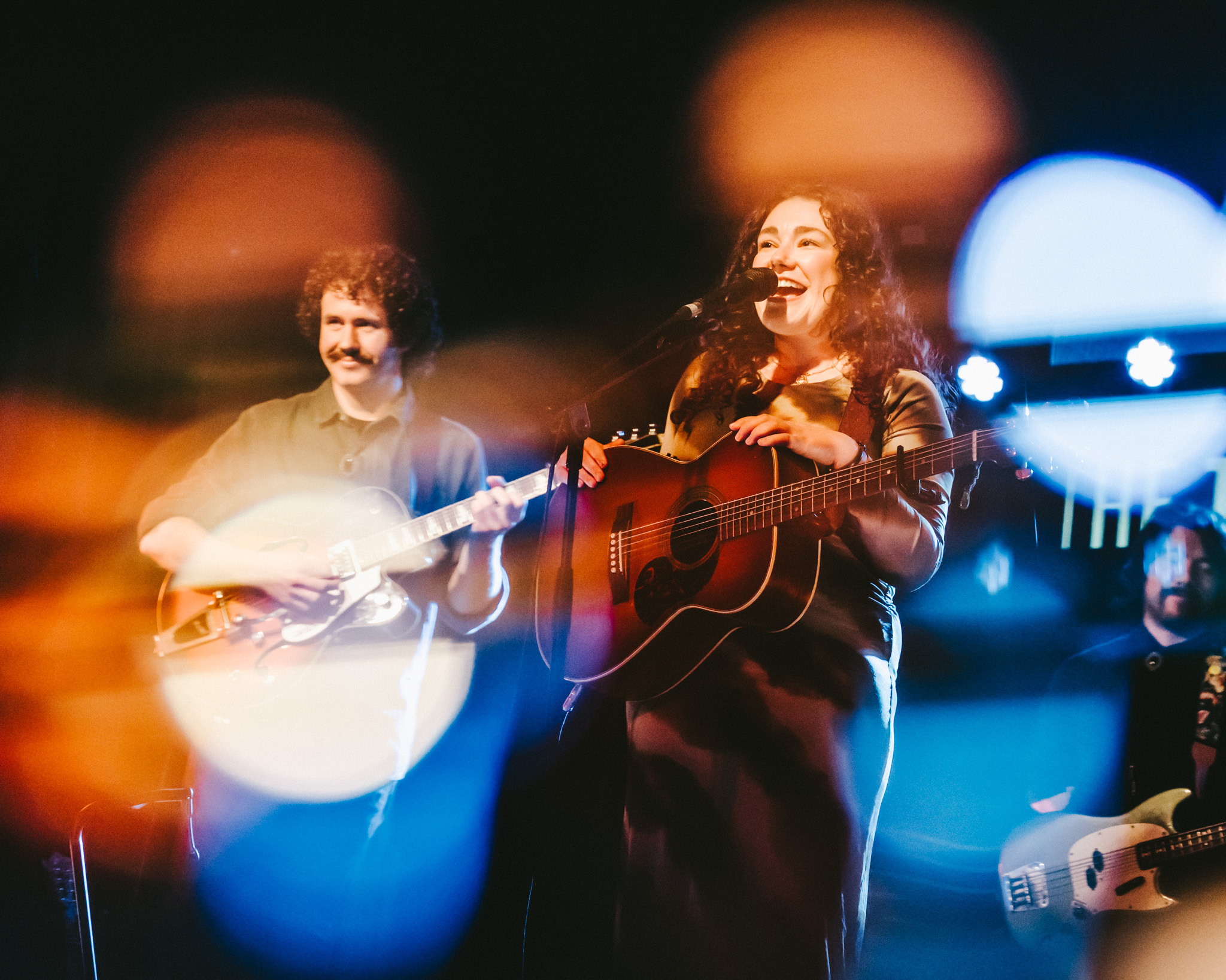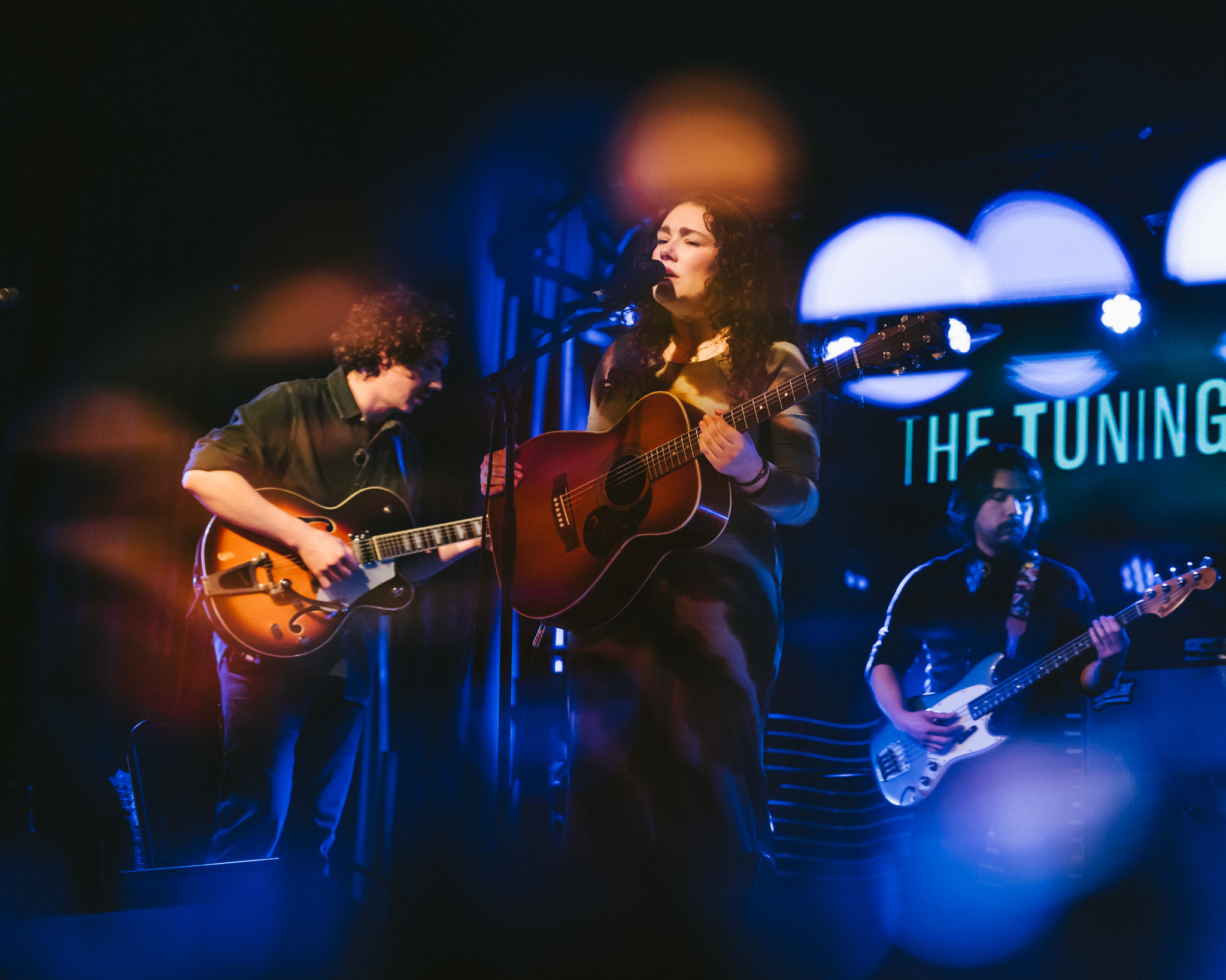 The band are on stage tonight. Mikey Muggeridge electric guitar and mandolin, Ryan Fisherman bass, and Joe McCallum drums.