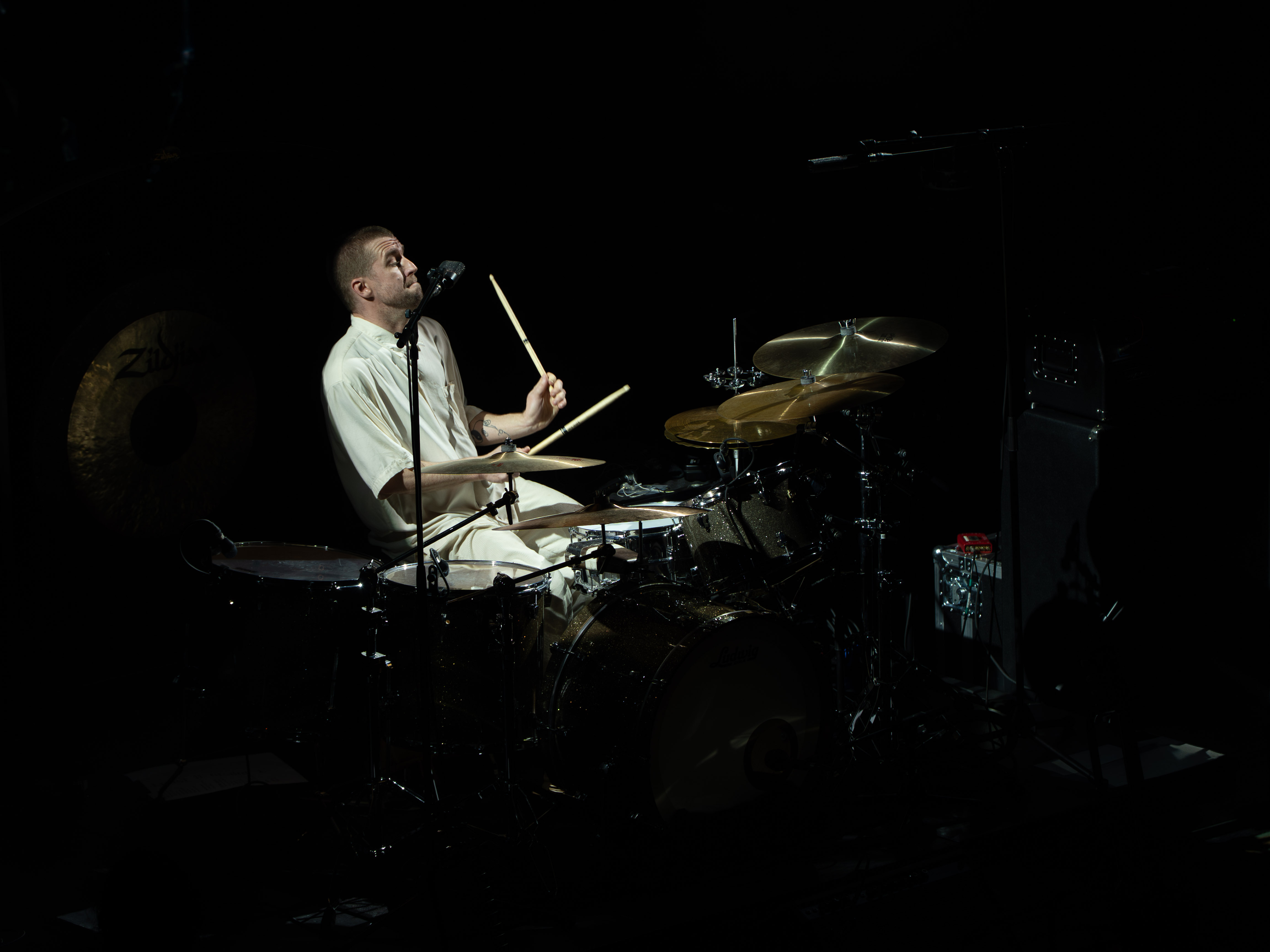 This one tonight is 15 minutes of stunning virtuosity which seems to have origins in the rapid-fire styles of Buddy Rich and Gene Krupa. Hands are used for an African talking drums effect. The cymbals crash like gongs. Amazing the energy generated and many in the audience stand in appreciation.