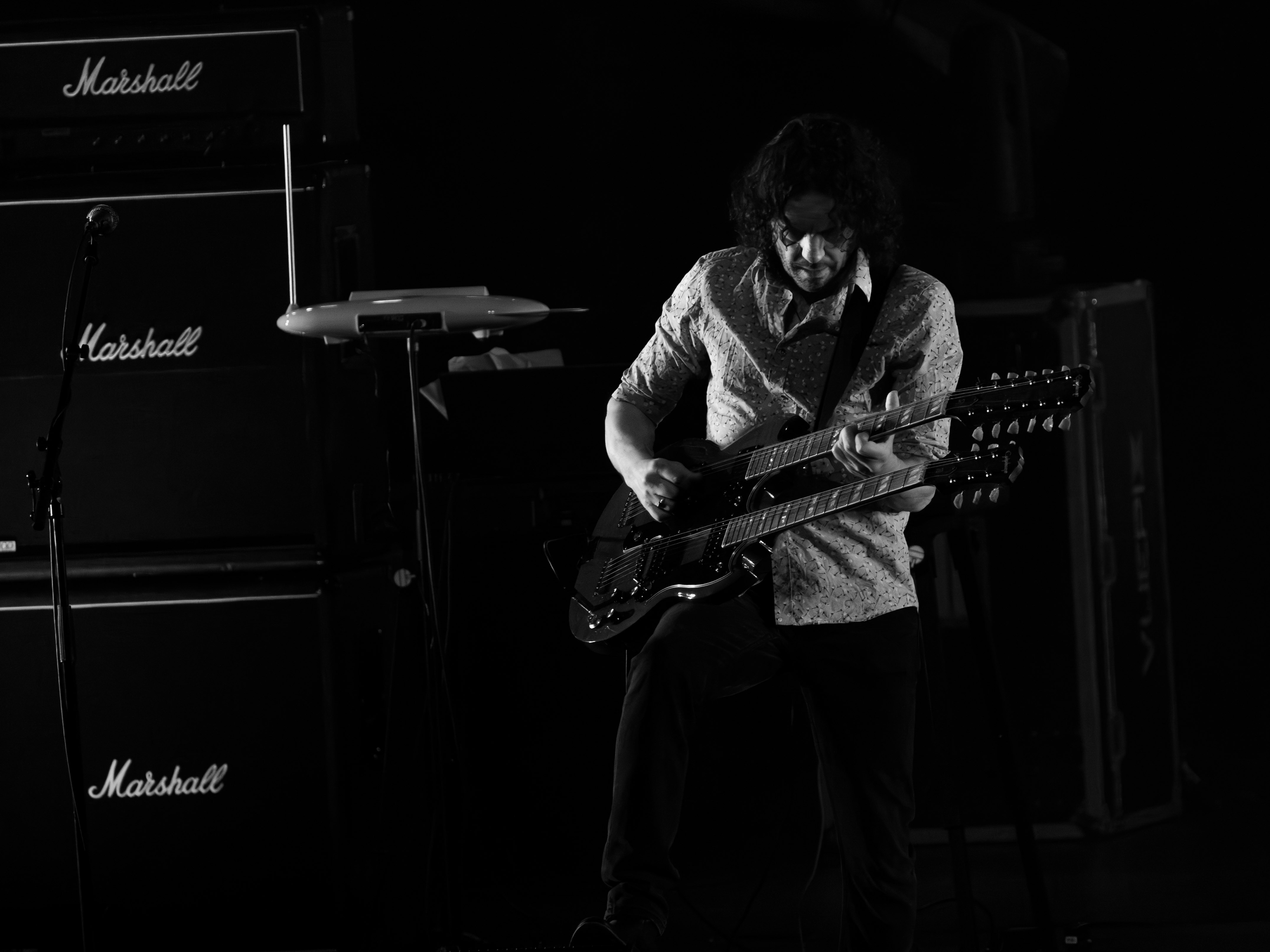 Skulander is wearing a shirt adorned with skulls for Stairway to Heaven. Adams plays a twin-neck 12-string and six-string. Would be unthinkable not to cover this for the Boomer audience, all in thrall tonight.