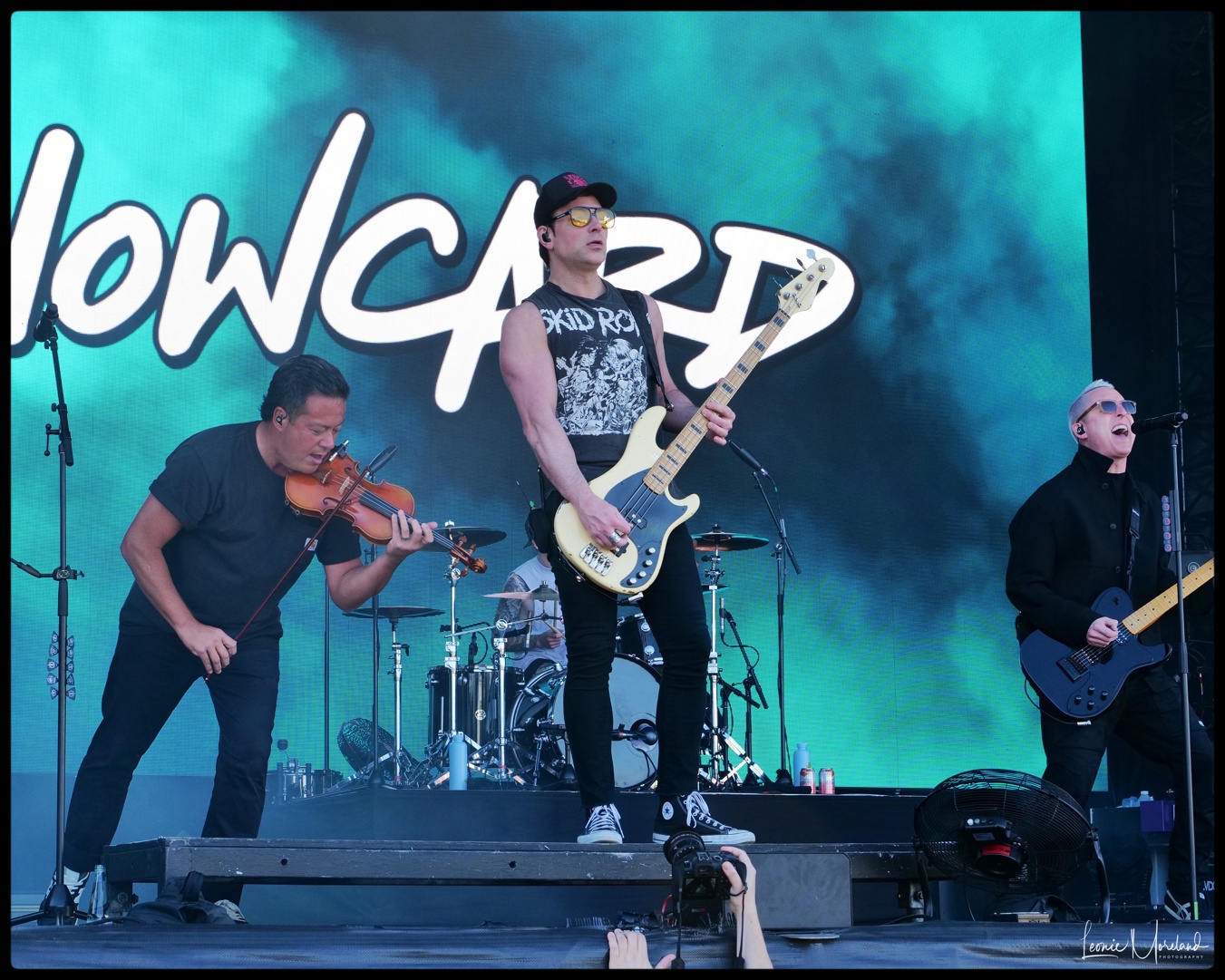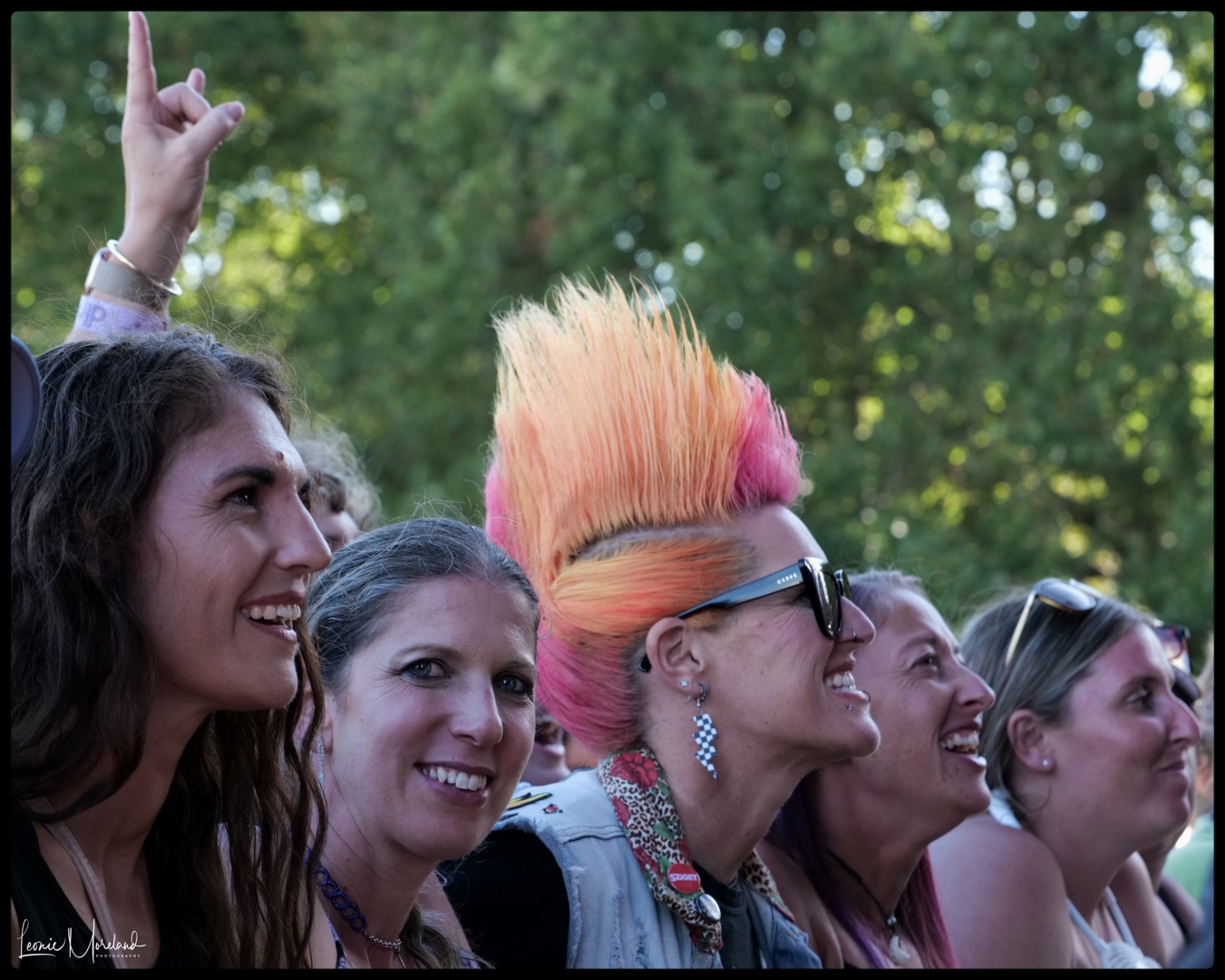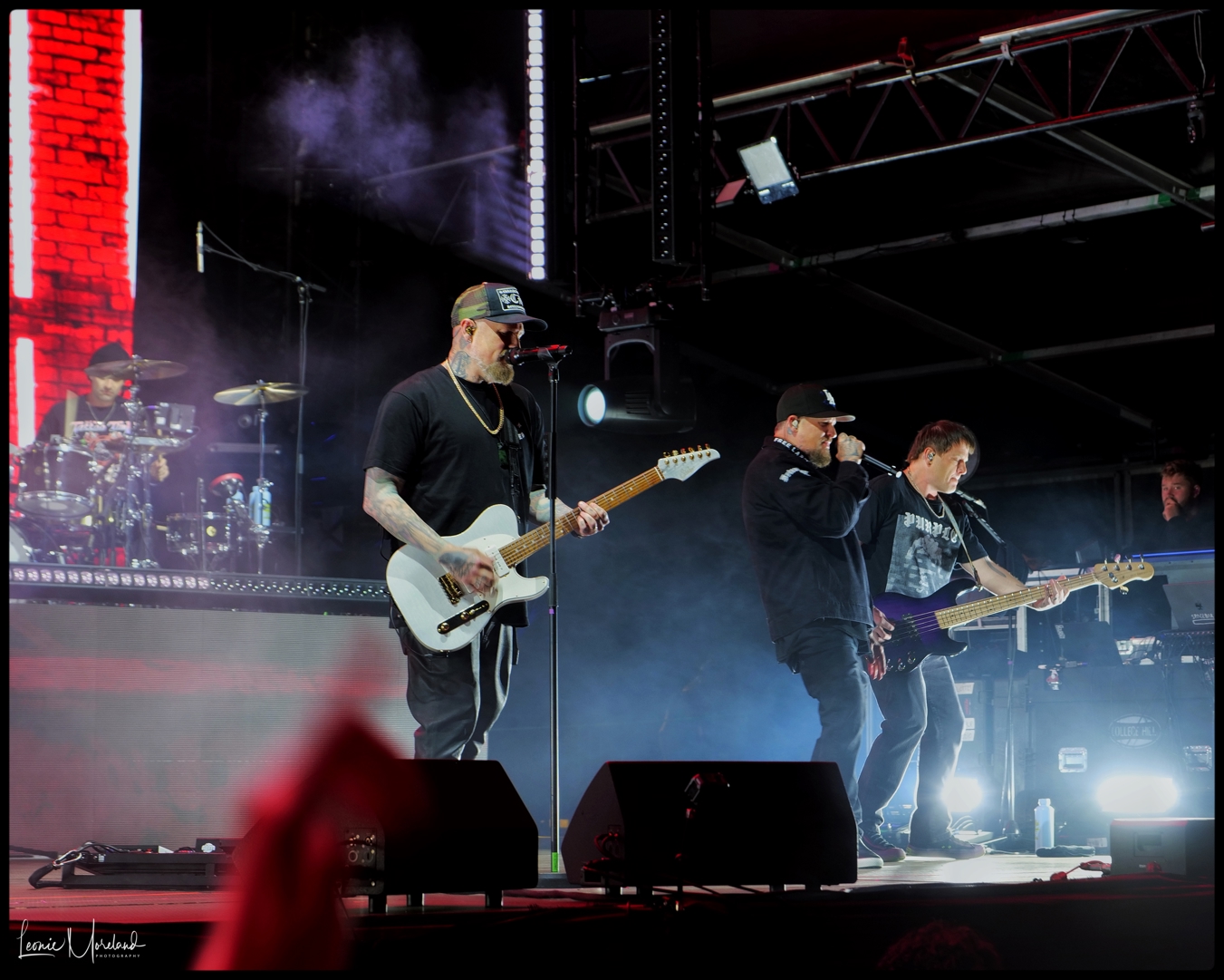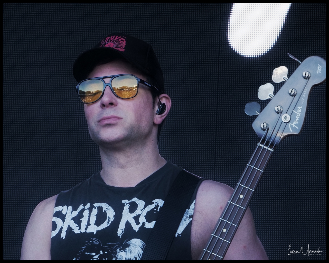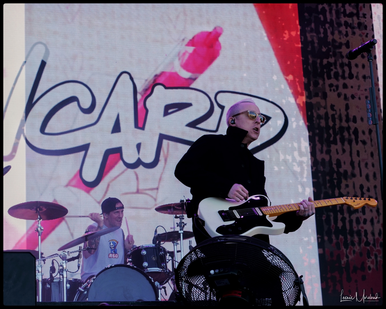 By now the moon had risen in the clear night sky and anticipation rippled through the crowd as techs moved across the stage like a wave, installing additional risers and lighting, the effect eliciting screams of delight as a giant 3D skull lit up the back screen and strobe lights had everyone in awe for the arrival of none other than Good Charlotte.