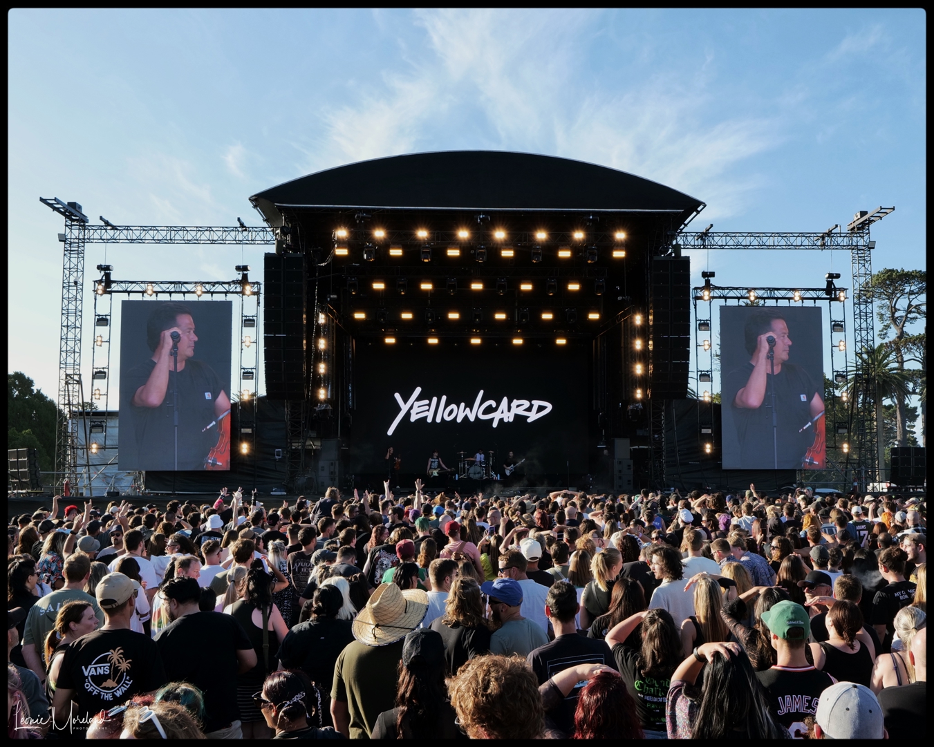 Of course, with Yellowcard about to take the stage, front and centre was the choice for many as the band from Jacksonville, Florida (the home of the infamous Limp Bizkit) kicked off with Way Away from their wildly popular Ocean Avenue album.