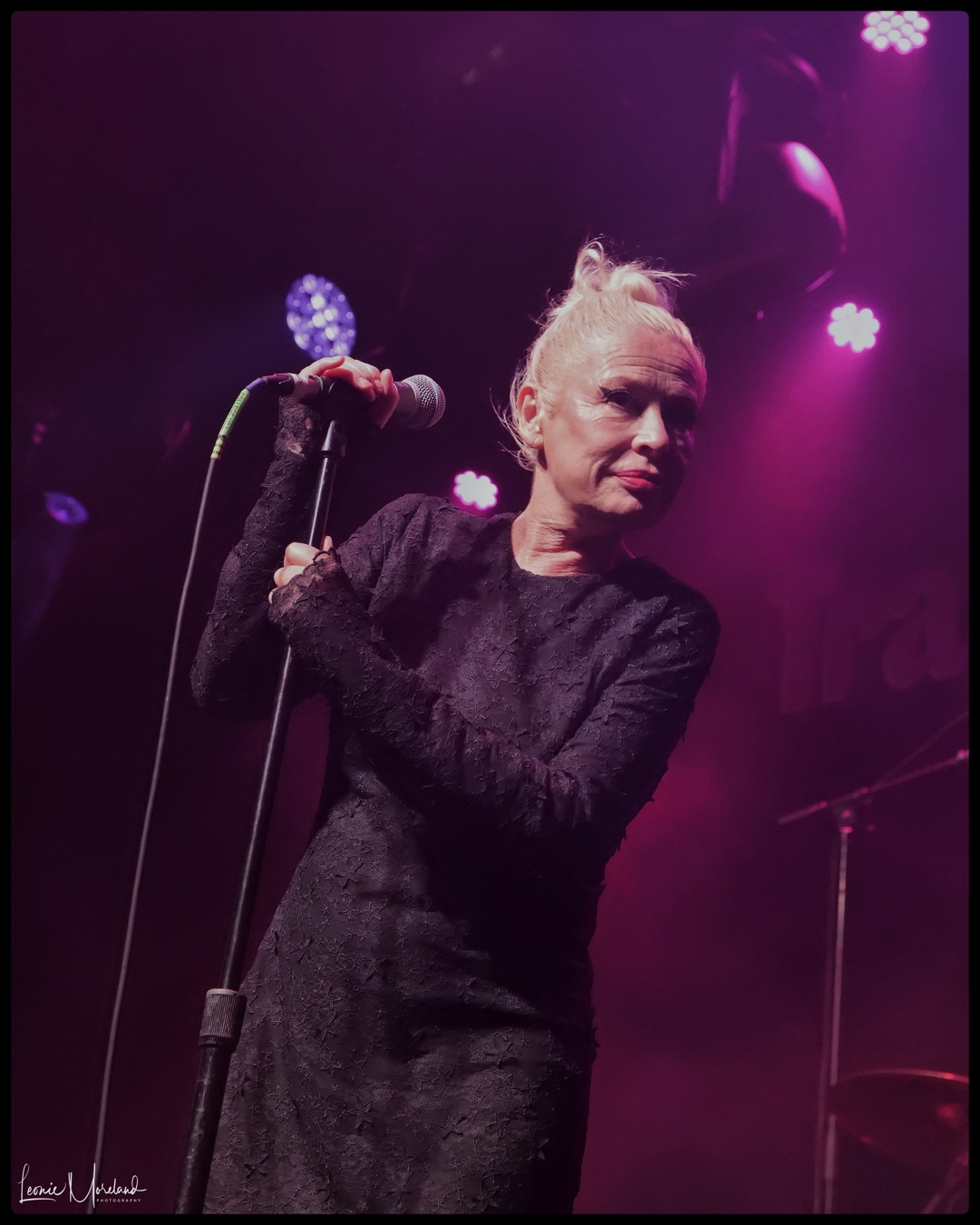 Wendy James is admittedly older now in her fifties, but she is aging gracefully and reminds me of her American counterpart Debbie Harry. A figure-hugging black outfit with skinny black-stockinged legs and blonde hair pulled into a tight top bun, she looks quite fabulous.