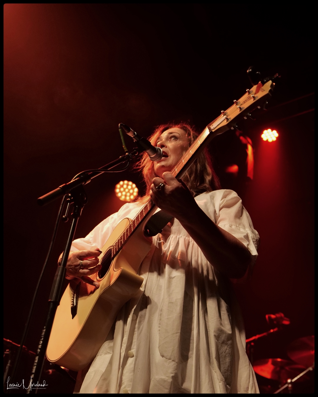 Plenty of those eager liner-uppers had made their way to the front of the stage so by the time Jan Hellriegel swept on with her bright white dress and her acoustic guitar, she had more than a few rows ready to listen up.