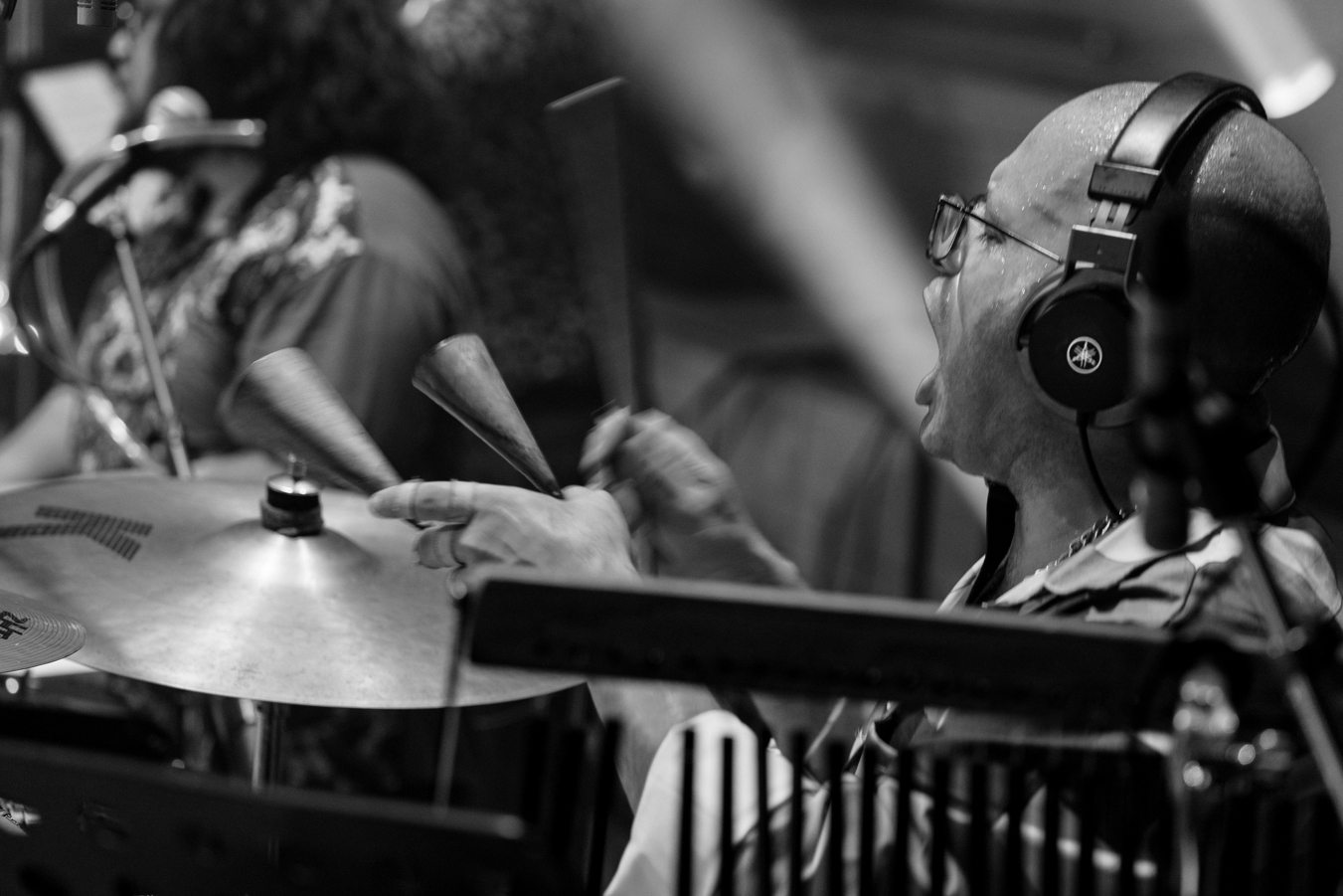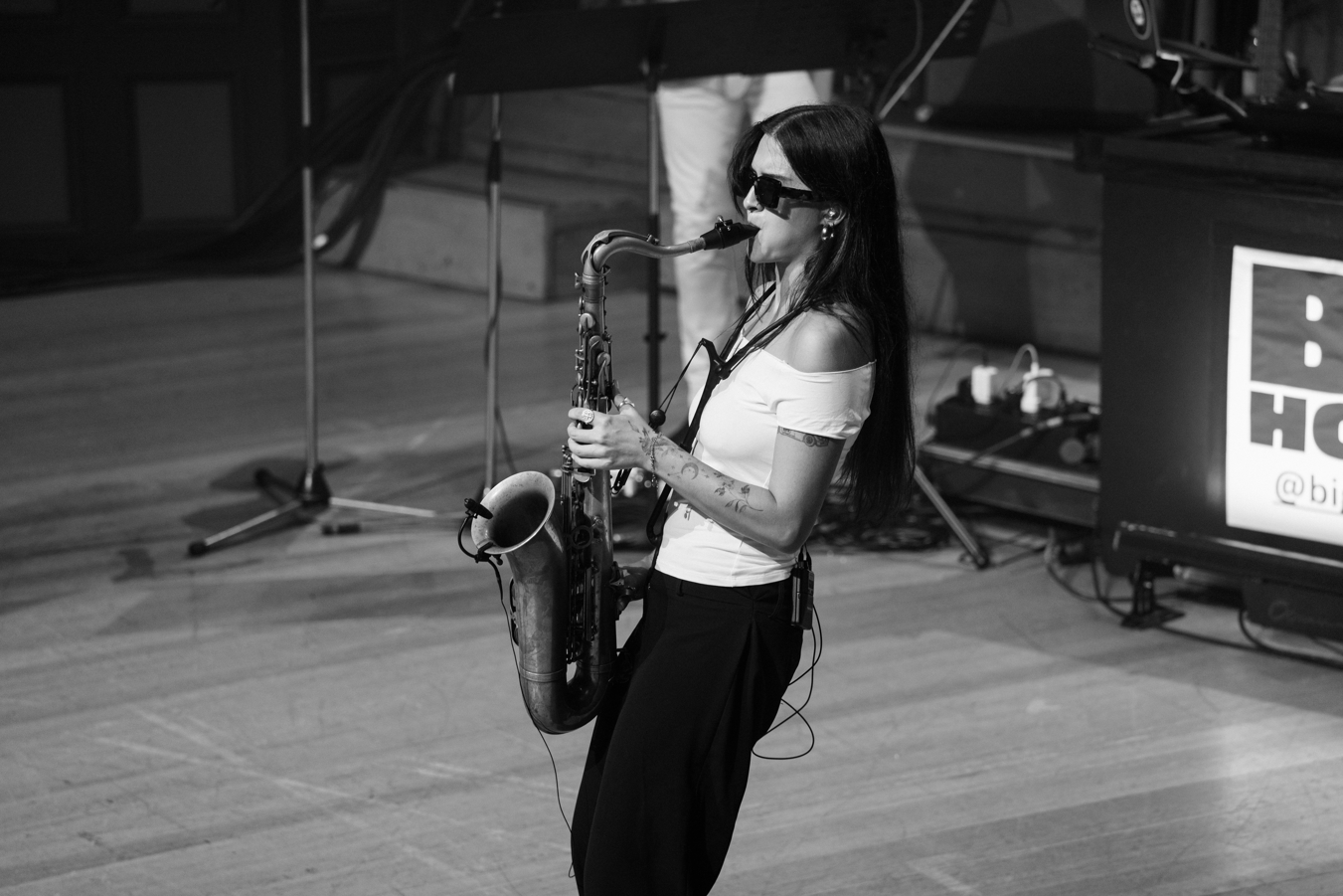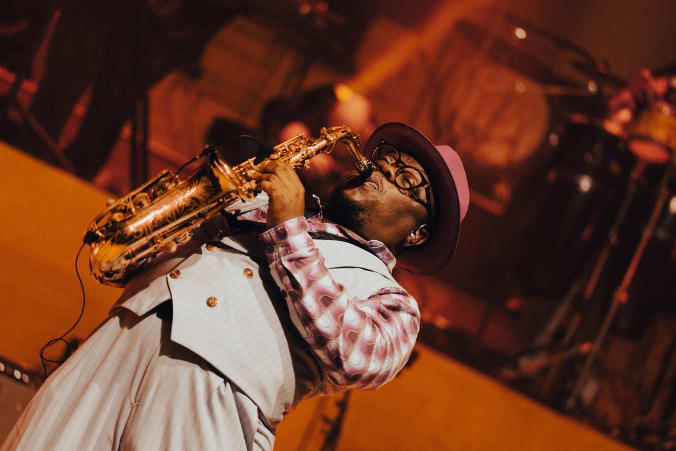 By now the massed horns have a hold of the collective heads and backbones of the large standing audience. Must mention the engine room drums of Elijah White and the bass of Isaac Etimani holding the massive rhythm section down.