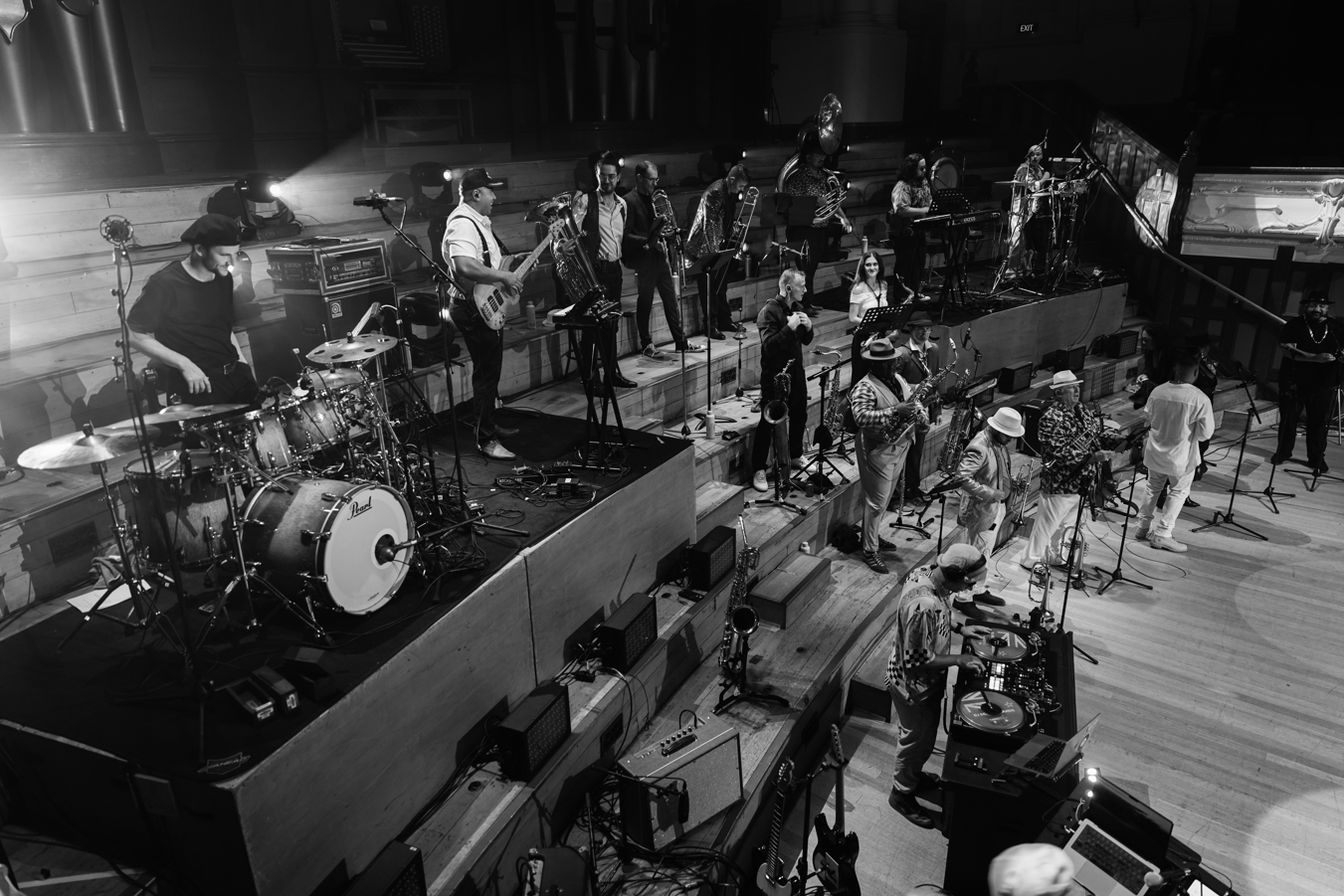 It is a massive sound tonight in the Great Hall. In 2024 I saw this show at the Powerstation where they cramped in up to thirty players on a smaller stage space.